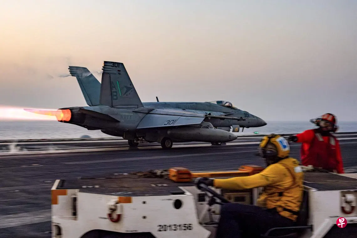 美国海军周一(4月28日)发布声明说,操作人员当时在甲板上拖曳这架价值6700万美元(约8773万新元)的战机,不料飞机和牵引车一起坠海。