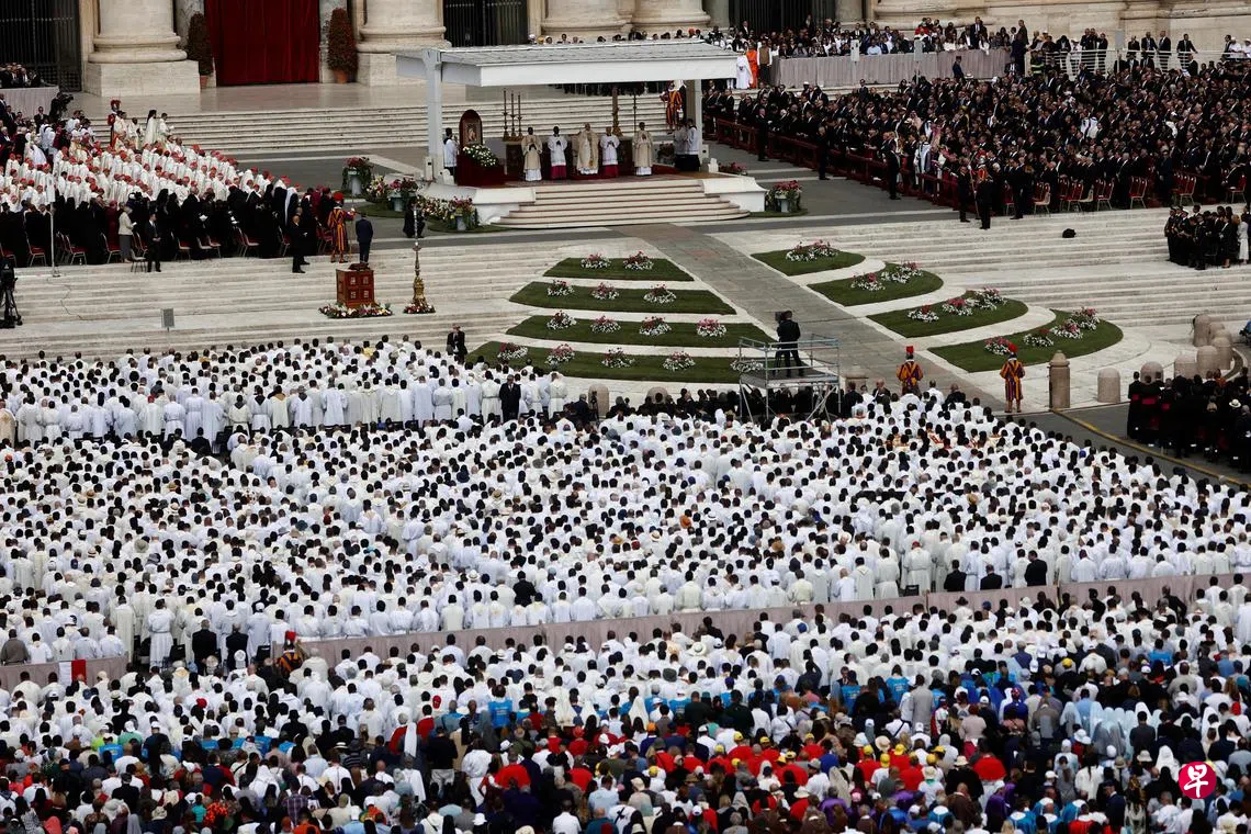 梵蒂冈说,到弥撒结束时,已有约20万人涌入梵蒂冈。有超过100个国家派出代表团出席新教宗的就职典礼,在全球深陷冲突和贸易战之际,各国代表之间的互动备受关注。