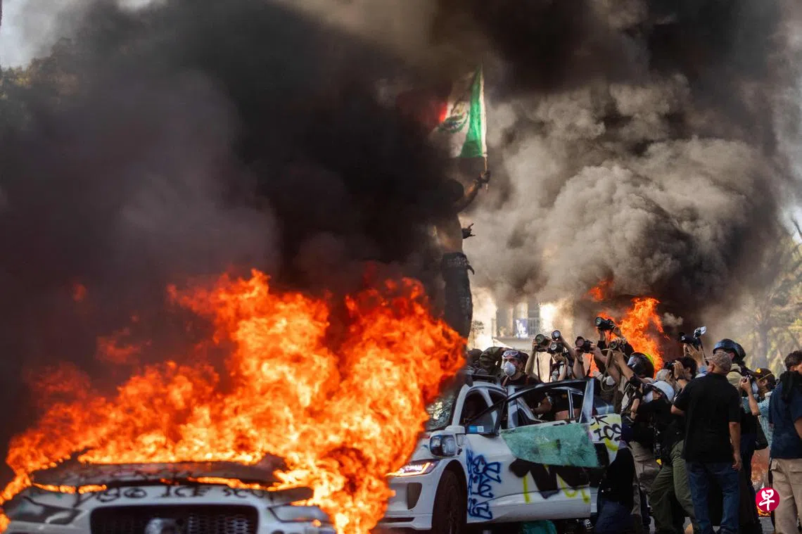 洛杉矶警察局长麦克唐纳在星期天晚间的新闻发布会上说,抗议活动已经失控。白宫发声明说:“所有人都看到了混乱、暴力和无法无天。”