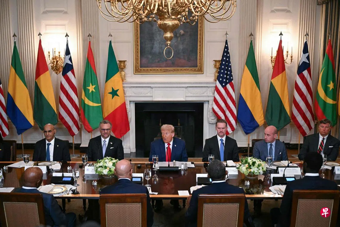 (华盛顿综合电)美国总统特朗普周三(7月9日)在白宫与加蓬、几内亚比绍、利比里亚、毛里塔尼亚和塞内加尔五个非洲国家的领导人举行会晤,指美国对非洲的政策正从援助转为贸易,更称美国是比中国更好的合作伙伴。