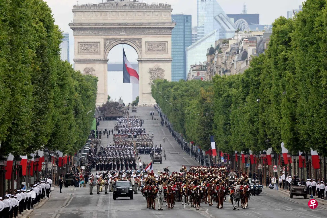 马克龙星期天(7月13日)在法国国庆节前夕,对军队发表年度讲话时说,由于面对前所未有的新威胁,未来两年法国将额外增加65亿欧元(约97亿3000万新元)国防预算,其中2026年额外增加国防预算35亿欧元,2027年增加30亿欧元。