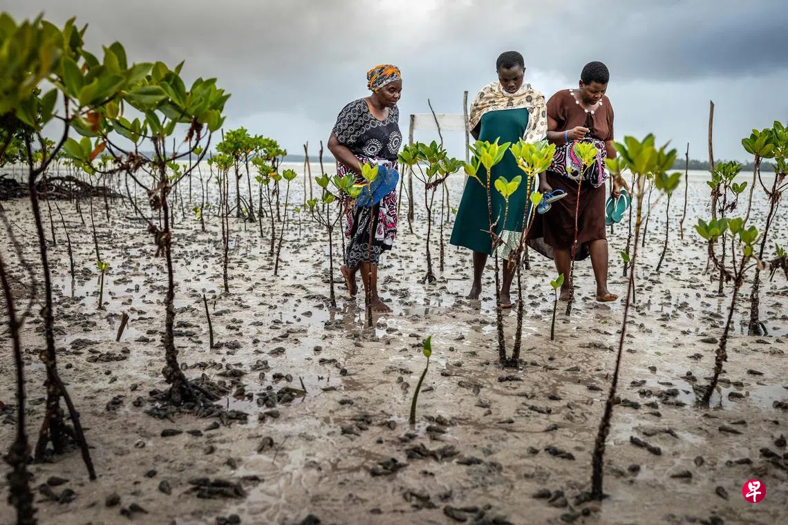 作为全球生物多样性最丰富的国家之一,肯尼亚近年来通过多方努力积极修复红树林生态,推进气候行动和可持续发展。在肯尼亚沿岸城镇瓦塔穆,当地妇女团体亲手培育、种植并守护红树林,让原本日益消失的红树林重获新生。她们的努力已复育数百万棵红树,不仅改善鱼类资源和生态环境,也加强海岸保护,甚至带来收入。图为8月4日,一些妇女赤脚踩着泥巴,检查她们种植的红树幼苗的生长情况。(法新社)