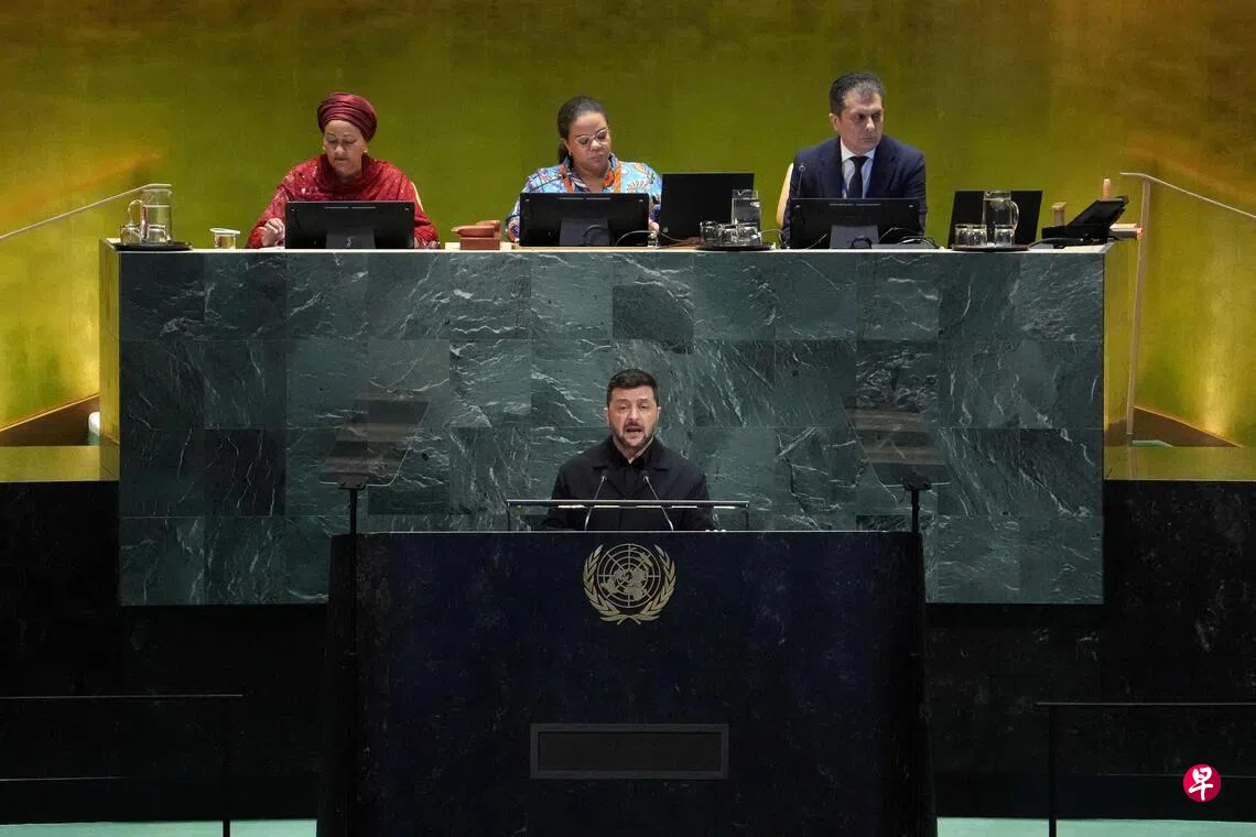 泽连斯基周三(9月24日)在第80届联合国大会上发表演讲时说:“大家现在就出手阻止俄罗斯,代价远低于在日后担心揣测,谁会率先研制出能搭载核弹头的简易无人机。”