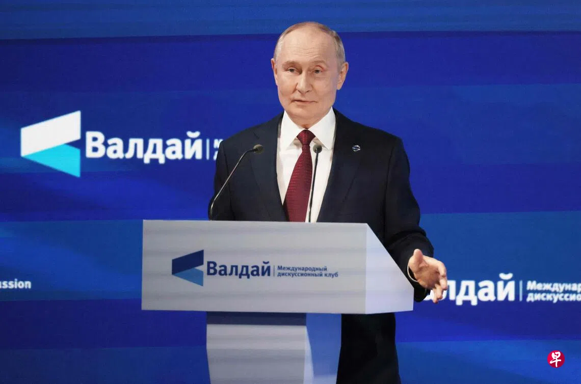 (索契/慕尼黑综合电)俄罗斯总统普京驳斥美国总统特朗普指俄国为纸老虎之说,暗示北约才是纸老虎,同时警告美国勿向乌克兰提供战斧导弹,否则将引发危险的新一轮局势升级。