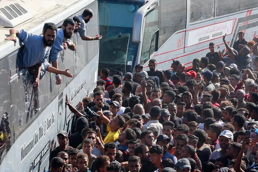 根据以哈达成的协议,在当地时间周一中午(新加坡时间周一傍晚5时)之前,哈马斯必须释放20名生还人质,并归还28具已故人质遗体,换取以色列释放近2000名巴勒斯坦囚犯。