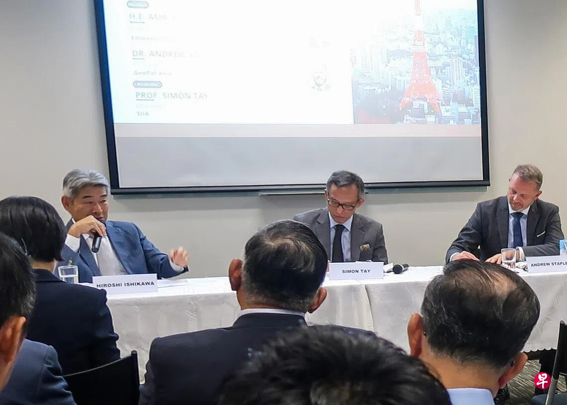 日本驻新加坡大使石川浩司星期二(10月14日)在本地智库新加坡国际事务学会(SIIA)举办的“日本观察:政治与经济的十字路口”对谈会上,对日本近期的政治动荡作出分析。