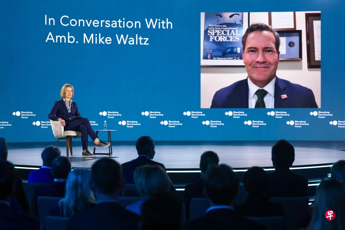 沃尔兹(Mike Waltz)星期五(21日)线上出席在新加坡举办的彭博创新经济论坛,与彭博新闻经济和政府部门主管弗兰德斯(Stephanie Flanders)讨论一系列地区问题。