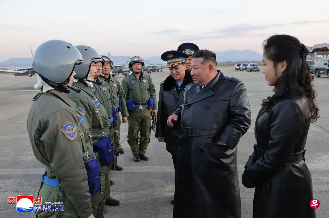 朝鲜领导人金正恩11月28日携女儿金珠爱一同出席空军成立80周年纪念活动,父女再度以黑色皮衣“亲子装”亮相,引发外界关注。