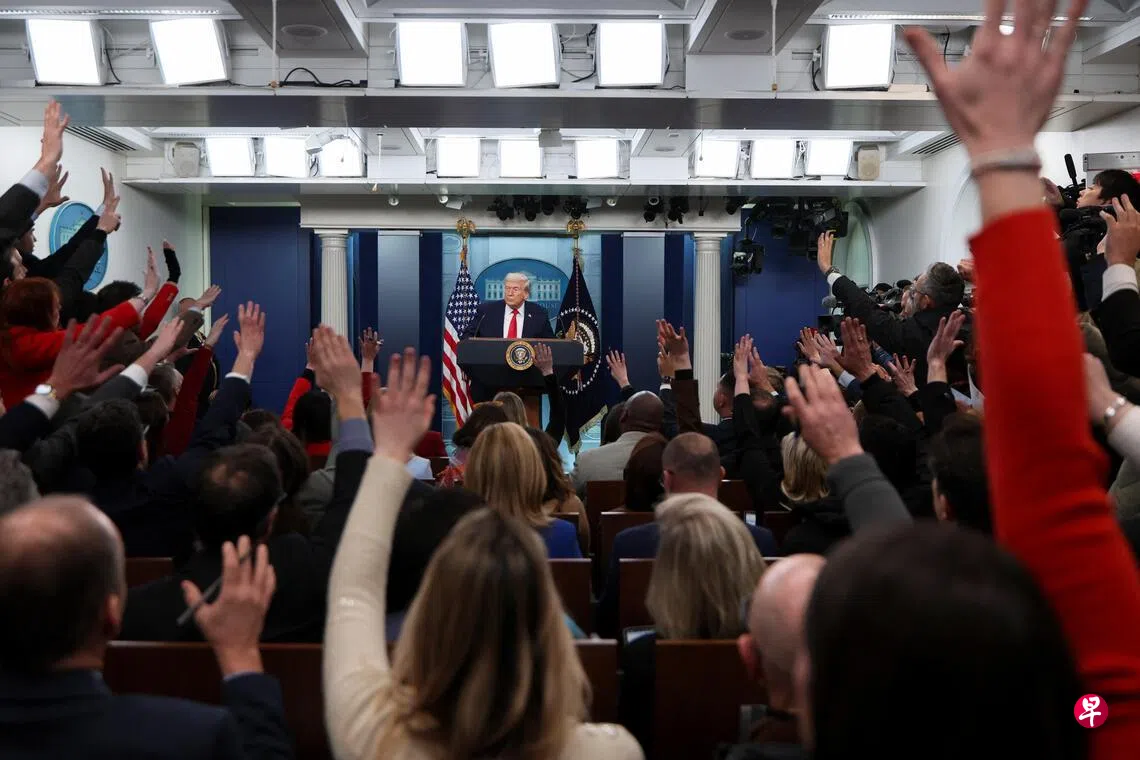 彭博社报道,特朗普星期二(1月20日)在飞往瑞士达沃斯出席世界经济论坛前,在白宫召开长达1小时40分钟的记者会。