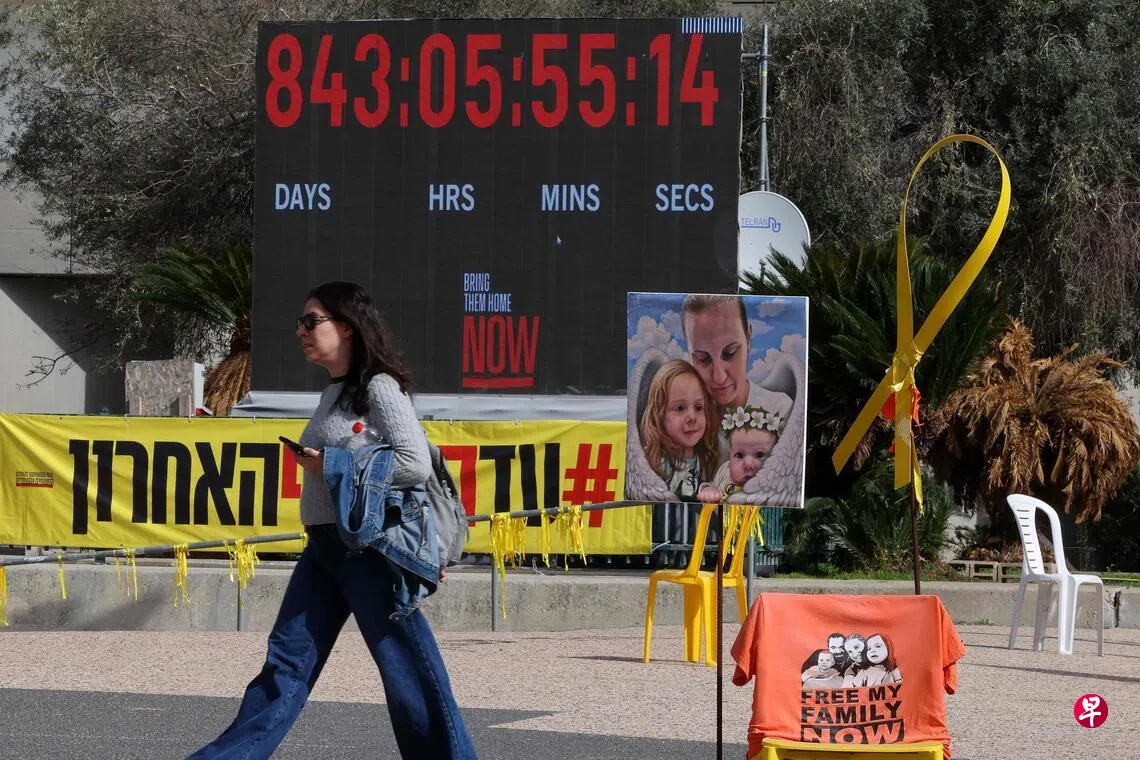 以色列广场一个记录人质被劫持时长的时钟,在844天后终于停止计时。