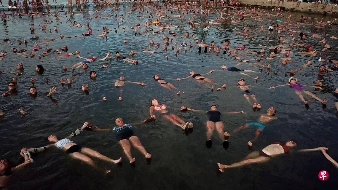 2月8日,湖水盐度为每升120克,湖中的1837人同时仰卧漂浮在水面上达三分钟。奇基塔湖在湿润年份的平均盐度约为每升35克,但水位下降时,盐度可高达每升250克。(法新社)