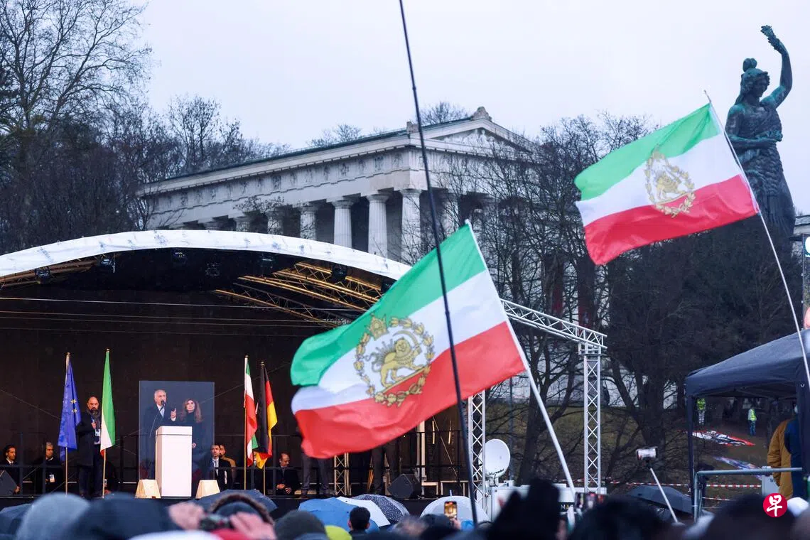 警方估计,慕尼黑安全会议场外星期六聚集了多达25万人,要求伊朗政权更迭。全球其他城市,包括墨尔本、雅典、东京和伦敦等地,也爆发大规模示威活动。