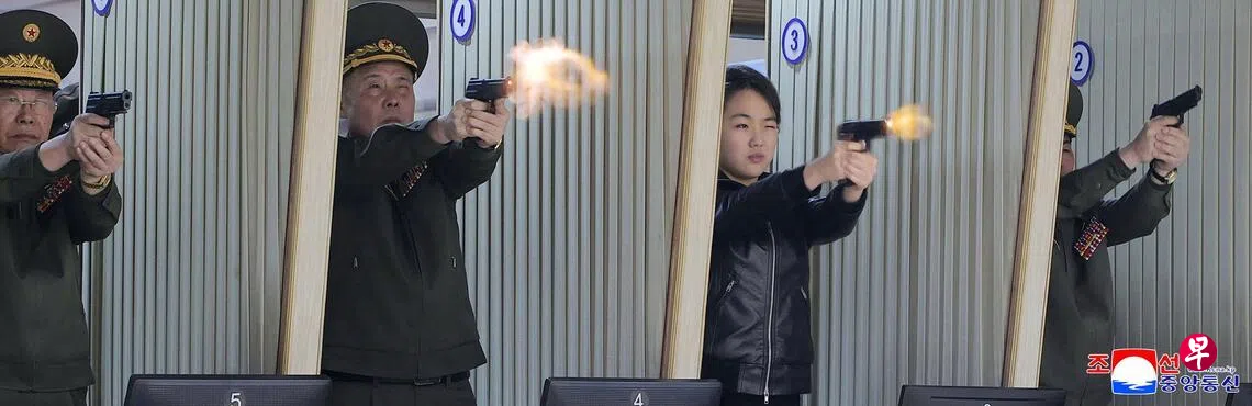 朝中社星期四(3月12日)公开的照片显示,金正恩与金珠爱身穿黑色皮夹克,在射击场进行手枪射击。金正恩单独试射新型手枪,金珠爱则与随行军队干部一同进行射击训练。