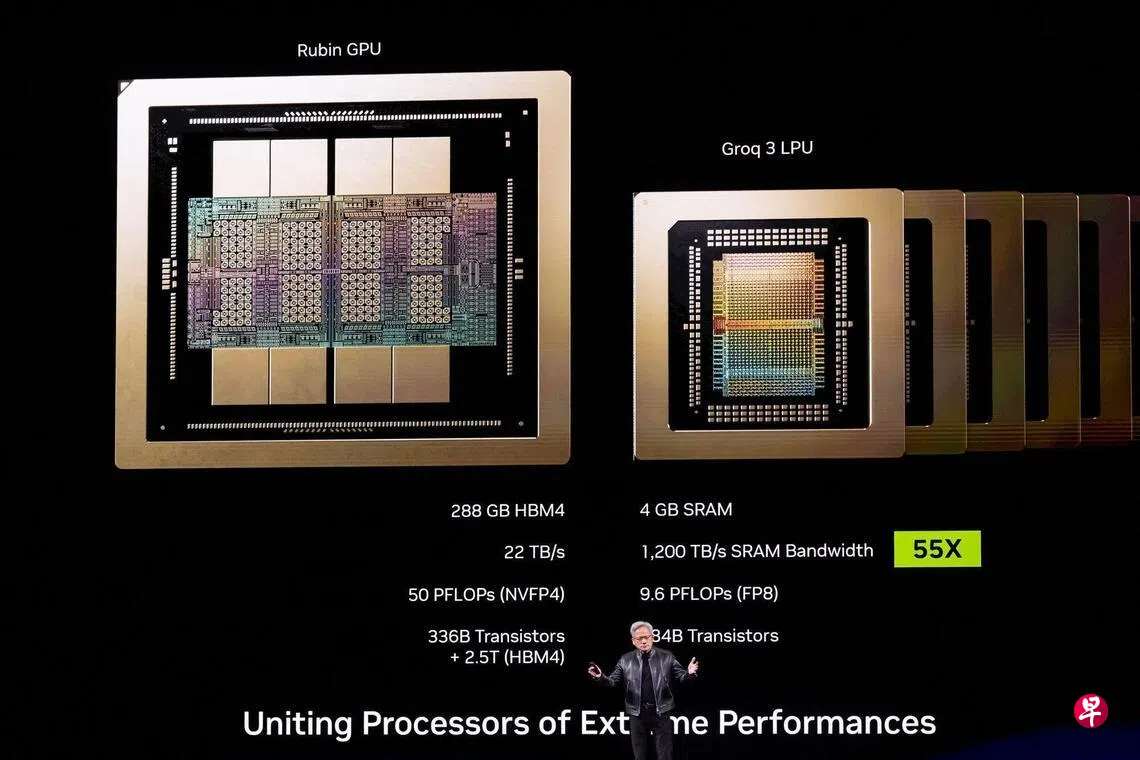 英伟达去年底以170亿美元(约217亿新元)收购人工智能(AI)晶片初创公司Groq,并于本周在美国加利福尼亚州圣何塞举行的年度开发者大会上,展示一系列基于Groq晶片的新产品。