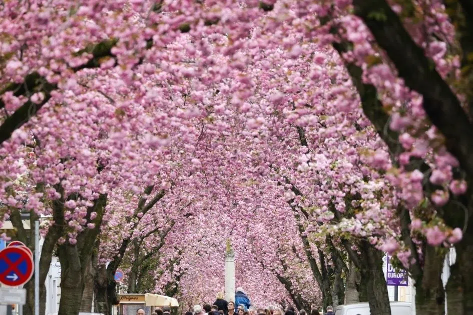 每年3月底至4月初,日本各地公园与河岸都会聚集野餐人群,人们会一边和亲友享用美食,一边欣赏樱花美景,这一习俗称为“花见”(hanami)。