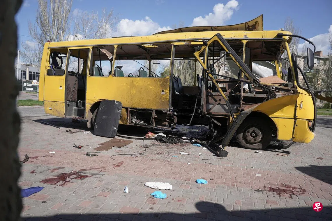 乌克兰总统泽连斯基星期二在社媒平台X上,分享的现场照显示,在尼科波尔一辆公交车被烧毁、车窗破碎,救援人员正在救助伤员,附近人行道上躺着遇难者的遗体。
