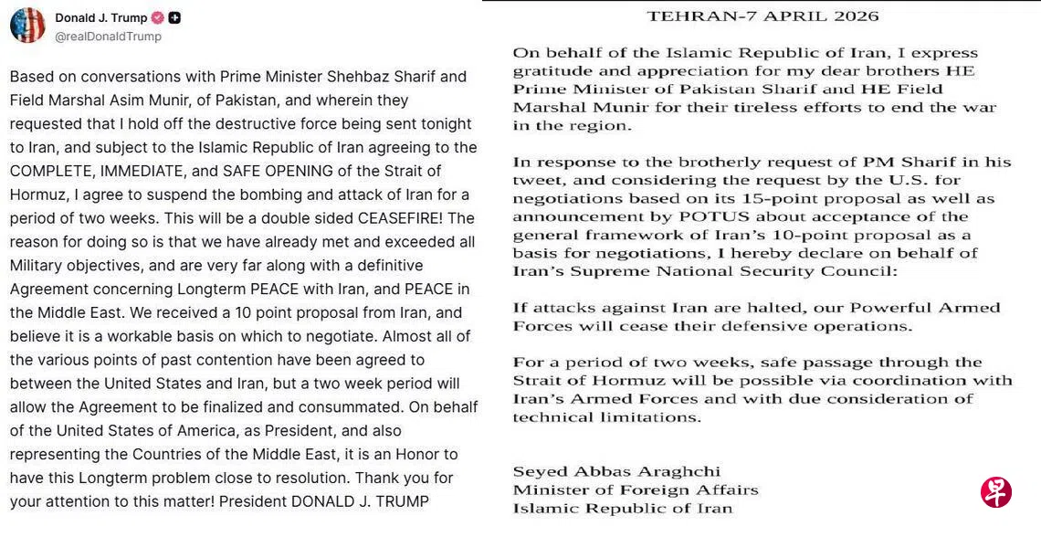 就在美国总统特朗普发出的“最最最后通牒”截止前约10小时,我们的新闻室里还在讨论:美国和伊朗会不会大打出手,还是最终偃旗息鼓。新加坡时间星期三清晨7时前,特朗普却在社交媒体上宣布,美伊已同意达成为期两周的停火安排。前一晚,他还强硬发出“让伊朗文明在一夜间覆灭”的威胁。