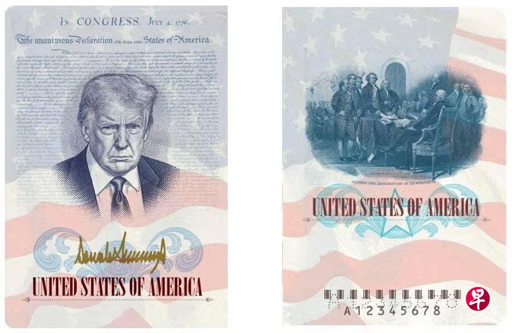 美国国务院提供的效果图显示,特朗普的肖像将印在护照内页,与美国1776年签署《独立宣言》的图片相对。