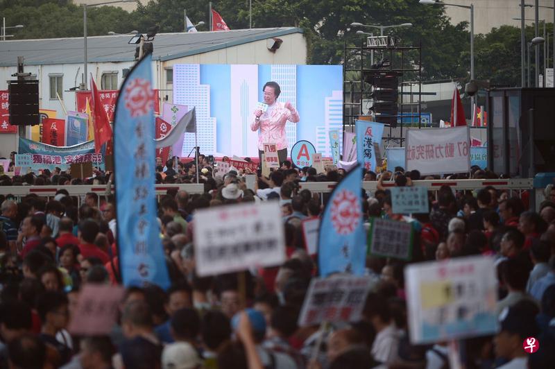 (联合早报网讯)“反港独撑释法”大联盟今天在香港立法会外举行大型集会,支持全国人大常委会就《基本法》104条释法,谴责“港独分子辱国辱华,企图分裂国家的言行”,大会称近千团体、逾4万人参与集会。