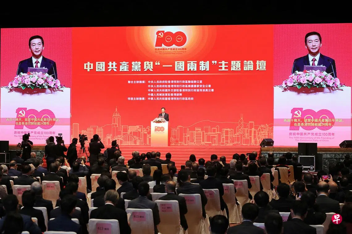 香港中联办今天上午举行“中国共产党与‘一国两制’主题论坛”,早上在湾仔会议展览中心举行。中联办主任骆惠宁在论坛致辞时称,那些叫嚣“结束一党专政”、否定中共对“一国两制”事业领导,企图把香港作为地缘政治的棋子、遏制中国的工具、渗透内地桥头堡的人,是在毁坏“一国两制“”制度根基,是香港繁荣稳定的真正大敌。