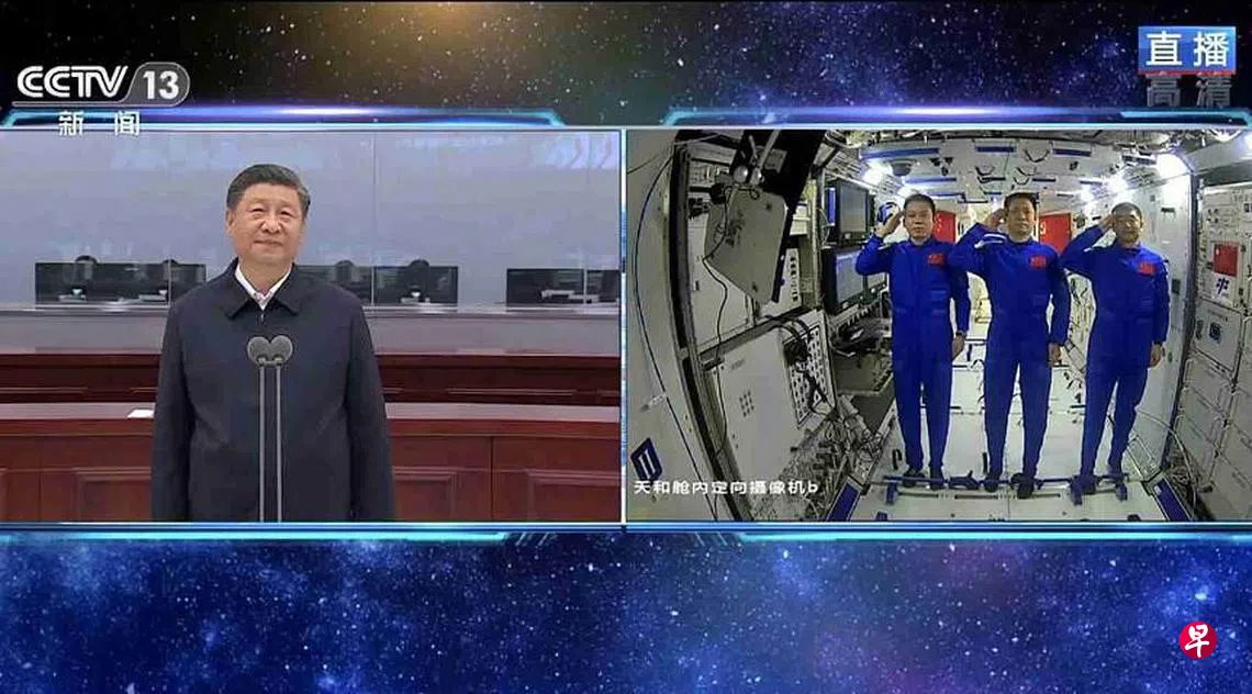 今天是三名航天员进驻中国空间站的第七天。据中国央视直播报道,习近平说,他代表党中央、国务院、中央军委和全国各族人民,向三人表示诚挚问候。