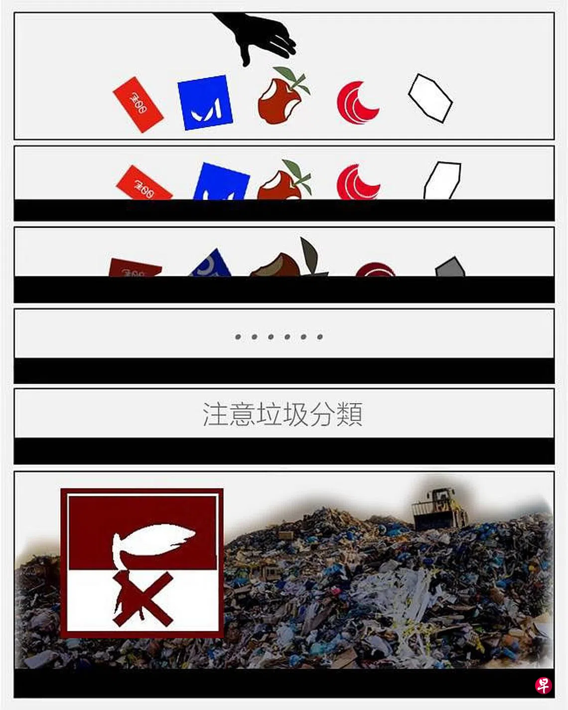 吴秋北也在这篇贴文附上一张图片,图片上写有“注意垃圾分类”,将《苹果日报》及上述提到的媒体暗喻为“垃圾”。