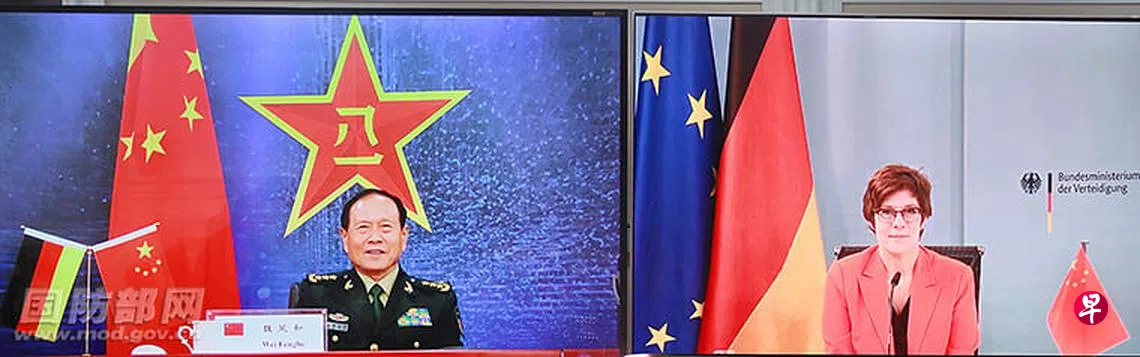 德国国防部长克兰普-卡伦鲍尔(Annegret Kramp-Karrenbauer)与中国国防部长魏凤和讨论了南中国海局势,包括即将在那里部署的一艘德国护卫舰。