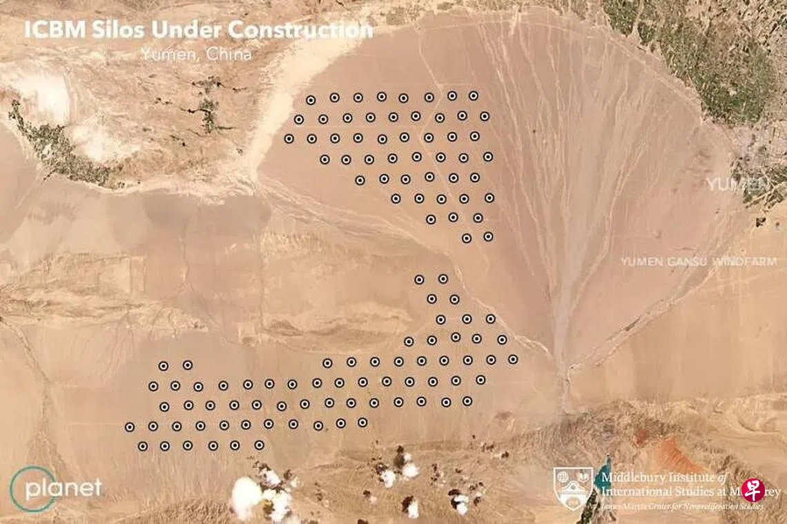 据《华盛顿邮报》本月1日报道,詹姆斯·马丁不扩散研究中心获得的卫星图像显示,甘肃玉门西部和西南部两处沙漠地区有119个几乎一模一样的建筑工地,其特征与中国现有核弹头弹道导弹发射设施相似。该研究中心东亚不扩散项目主任刘易斯认为,这些发射井可能是为东风-41洲际弹道导弹设计。