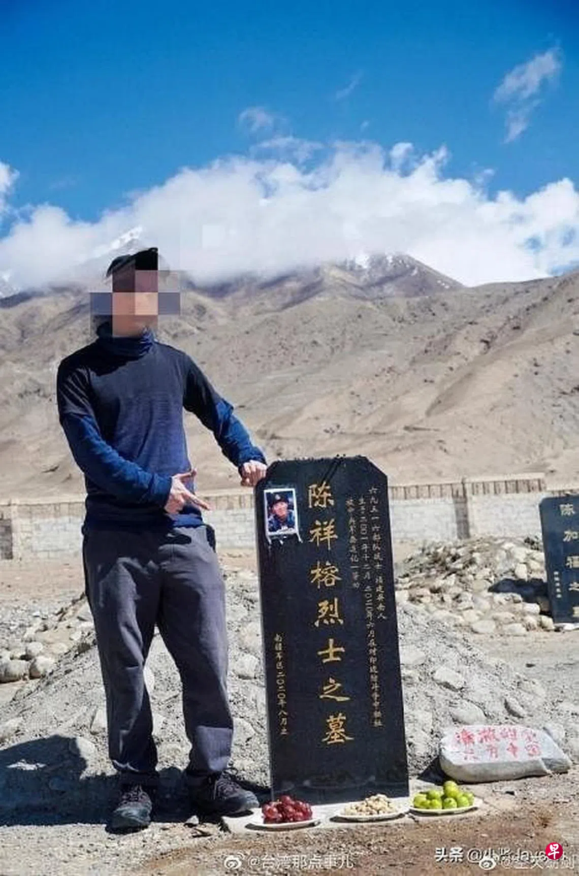 有网友昨天在微博贴出一组照片并配文称,“今日头条的旅游up主***,卫国戍边英雄墓碑不是你应该摆pose拍照的地方,请对烈士予以应有的尊重。”