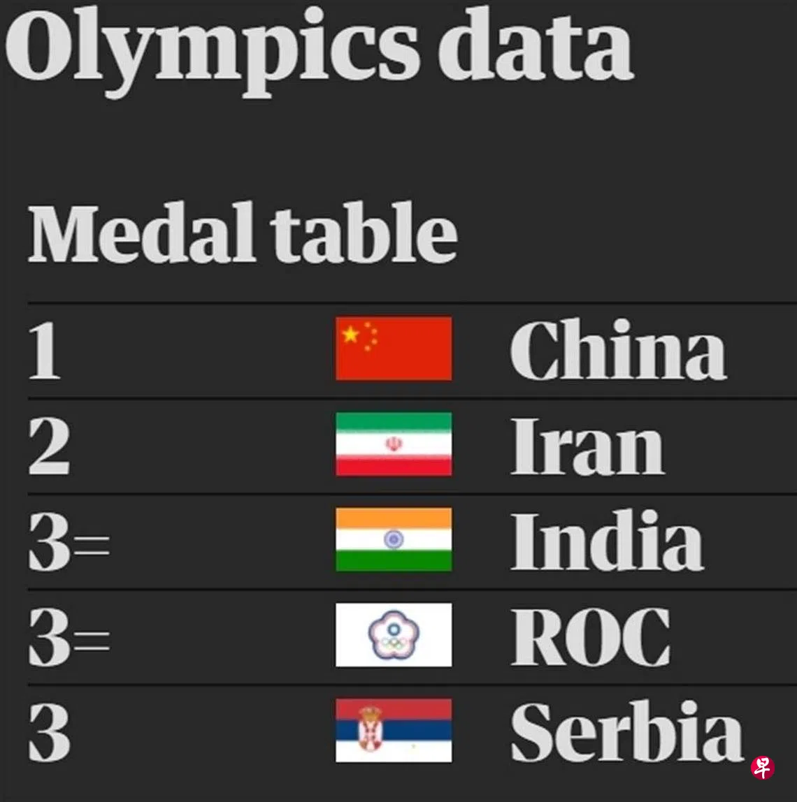 东京奥运会今天(24日)产生多枚奖牌得主,英国媒体《卫报》在制作奥运奖牌榜时,误将ROC当成台湾队,配上台湾奥运代表团的旗帜。