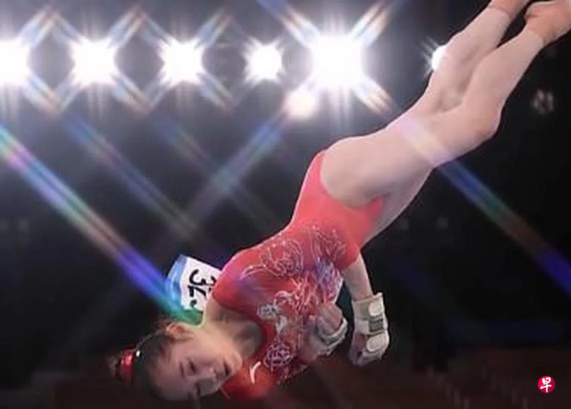 中国女子体操队选手唐茜靖前天在东京赛场上进行的自由操资格赛中,选用抗日曲作为比赛的背景音乐。