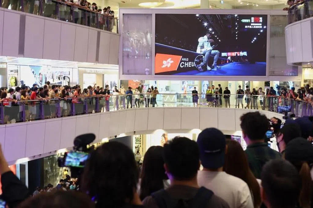 香港击剑运动员张家朗26日在奥运男子个人花剑赛夺得金牌,当天有数百名市民聚集于apm商场观看现场直播。网传视频显示,多个市民在奏国歌时发出嘘声,也有人高喊“We are Hong Kong”。