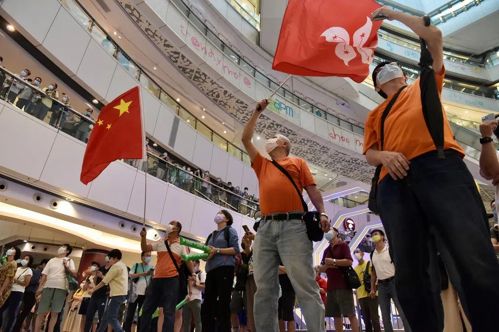 港泳将夺银 民众在商场挥国旗被人骂