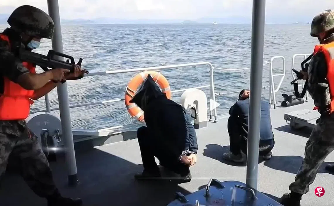 海上联合指挥所指挥也对香港海域的“可疑船只”进行临检拿捕,两组特战小队搭乘舰艇,在直升机的引导下到达任务区域实施海上追逃、拦截查证任务。
