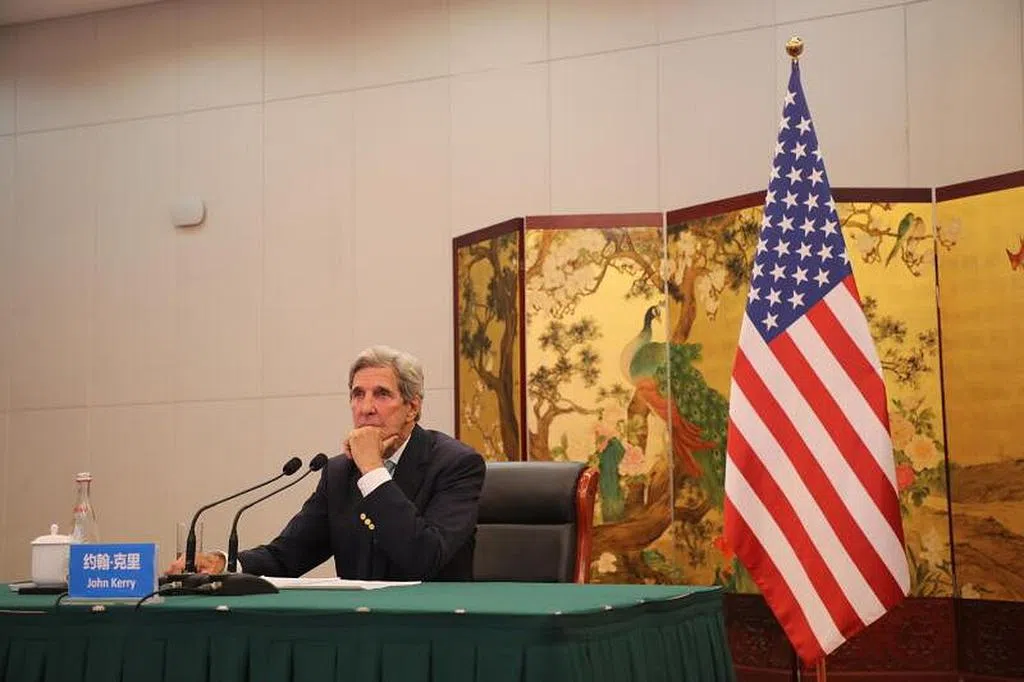 克里此行除了在天津与中国气候变化事务特使解振华会谈,也通过视频依序会见了中国国务委员兼外长王毅、中国副总理韩正和中共中央外事工作委员会办公室主任杨洁篪。