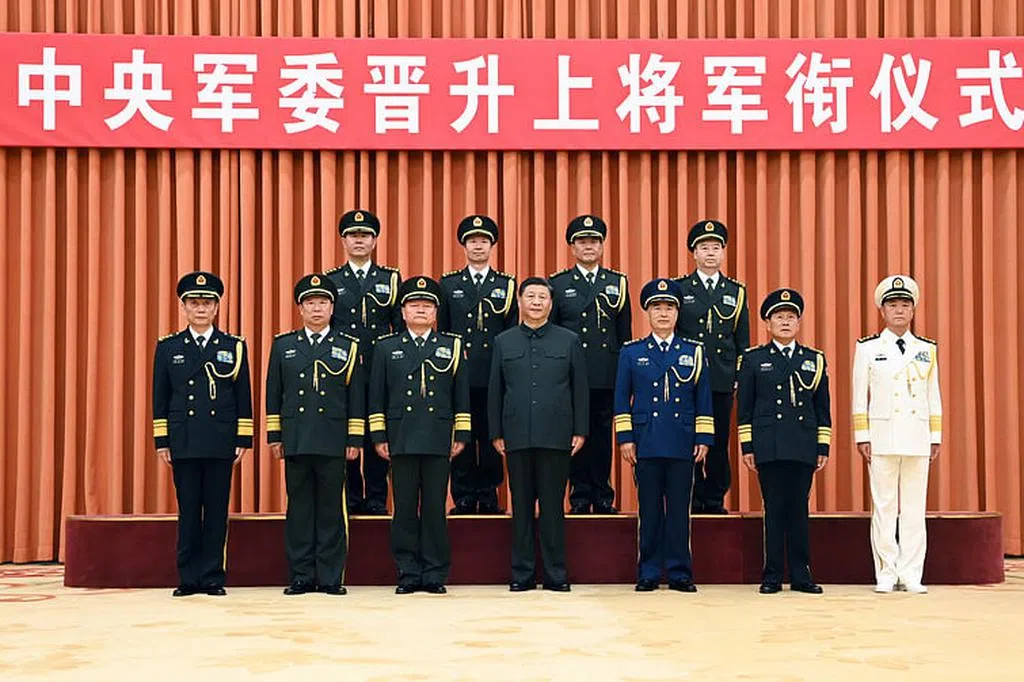 据新华社报道,中央军委晋升上将军衔仪式昨天在北京八一大楼举行,中央军委主席习近平向晋升上将军衔的军官颁发命令状。中央军委副主席许其亮宣读了晋升上将军衔命令。中央军委副主席张又侠主持晋衔仪式。