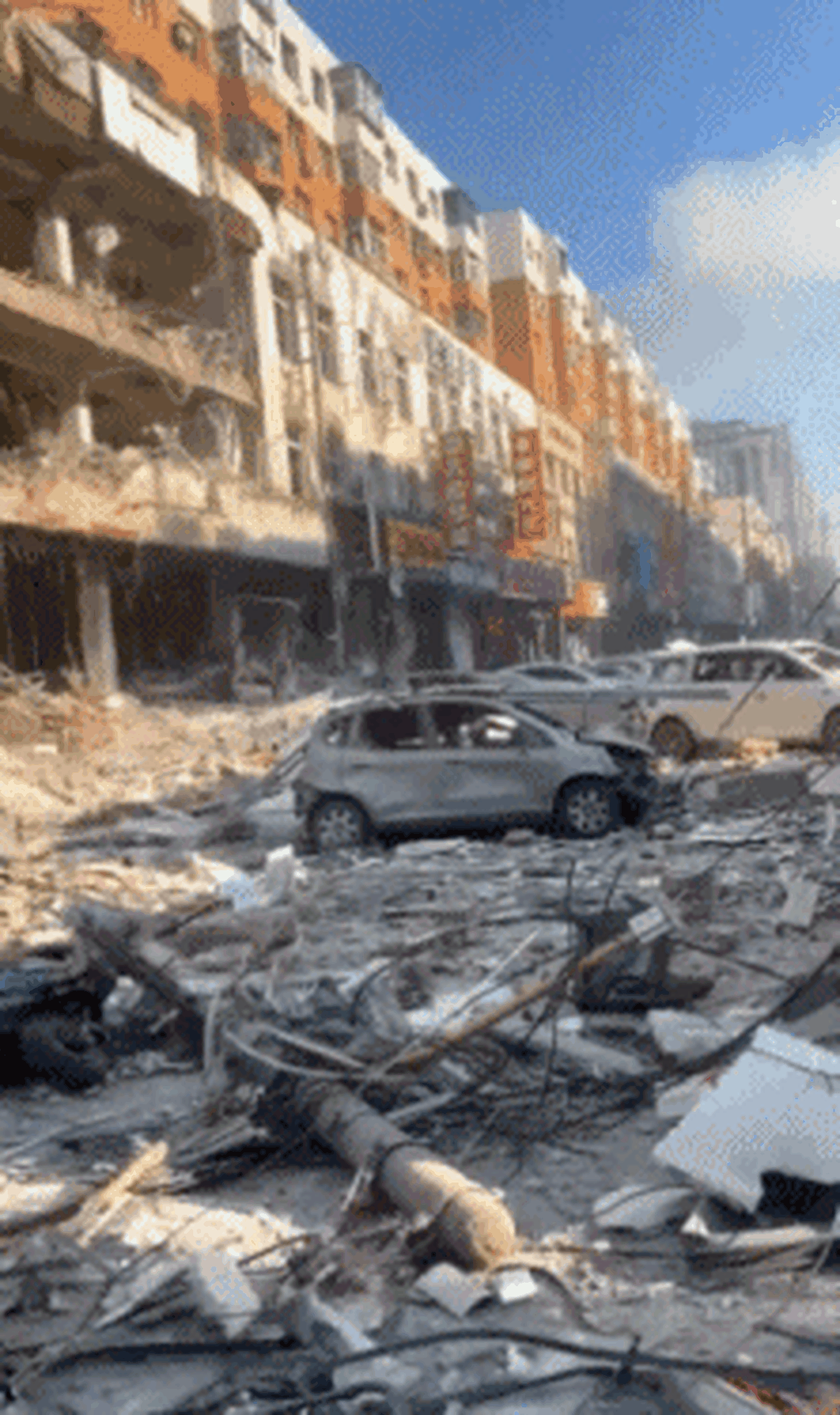 网传视频显示,爆炸位置位于太原南街南七马路交会处,路口多栋建筑受损严重,外窗损毁、露出钢筋。现场腾起浓烟,远处玻璃都被震碎。