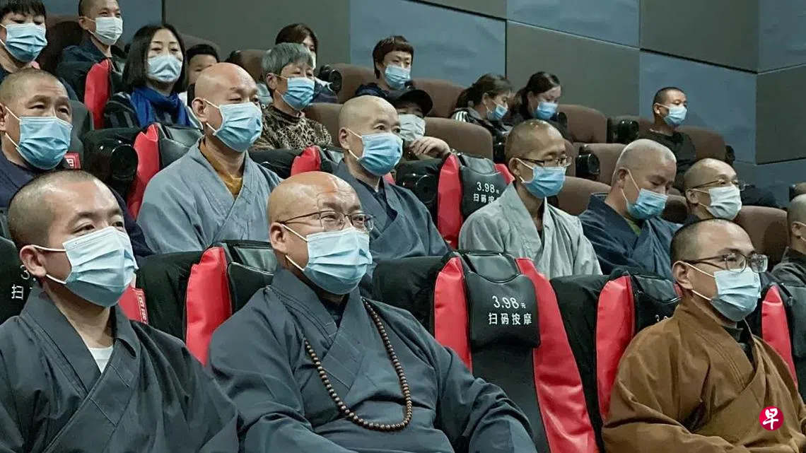 华盛寺也附上照片,显示18名和尚在戏院观看了这部电影。