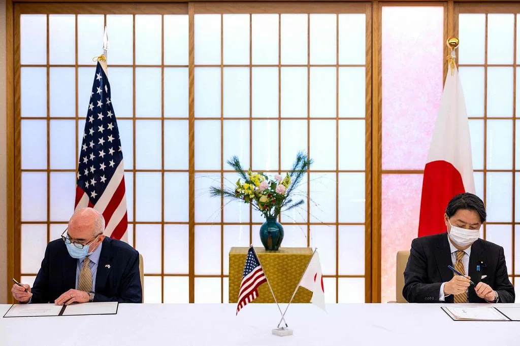 另据共同社报道,日本与美国外交部长与国防部长在2+2视讯会议结束后签署防卫装备合作研究协定,旨在抗衡中国和朝鲜等推进开发的高超音速导弹等新型武器。布林肯说,新协定将使两国更容易合作应对新的防御威胁,包括高超音速武器和以太空为基地的战斗力。