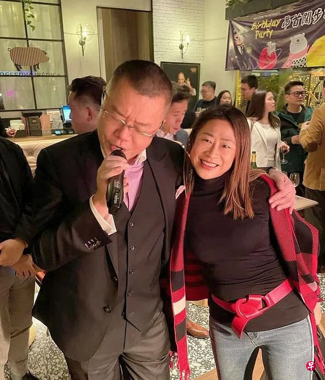 不过,网上流传的派对现场照片显示,主人翁洪为民当日左手搭在一名女子肩头,脱下口罩唱歌。