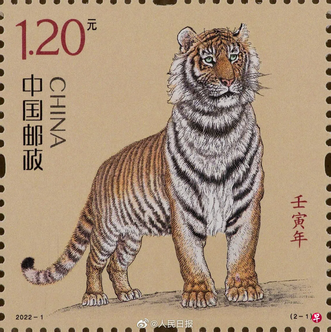 中国集邮有限公司作为发行方在官网介绍,1月5日发行的《壬寅年》特种邮票是中国生肖邮票第四轮中的第七套,虎的形象从“实”出发,得虎之天性,细致诠释了虎的美感。邮票延续了第四轮生肖邮票的设计理念,诠释出“国”与“家”的概念。