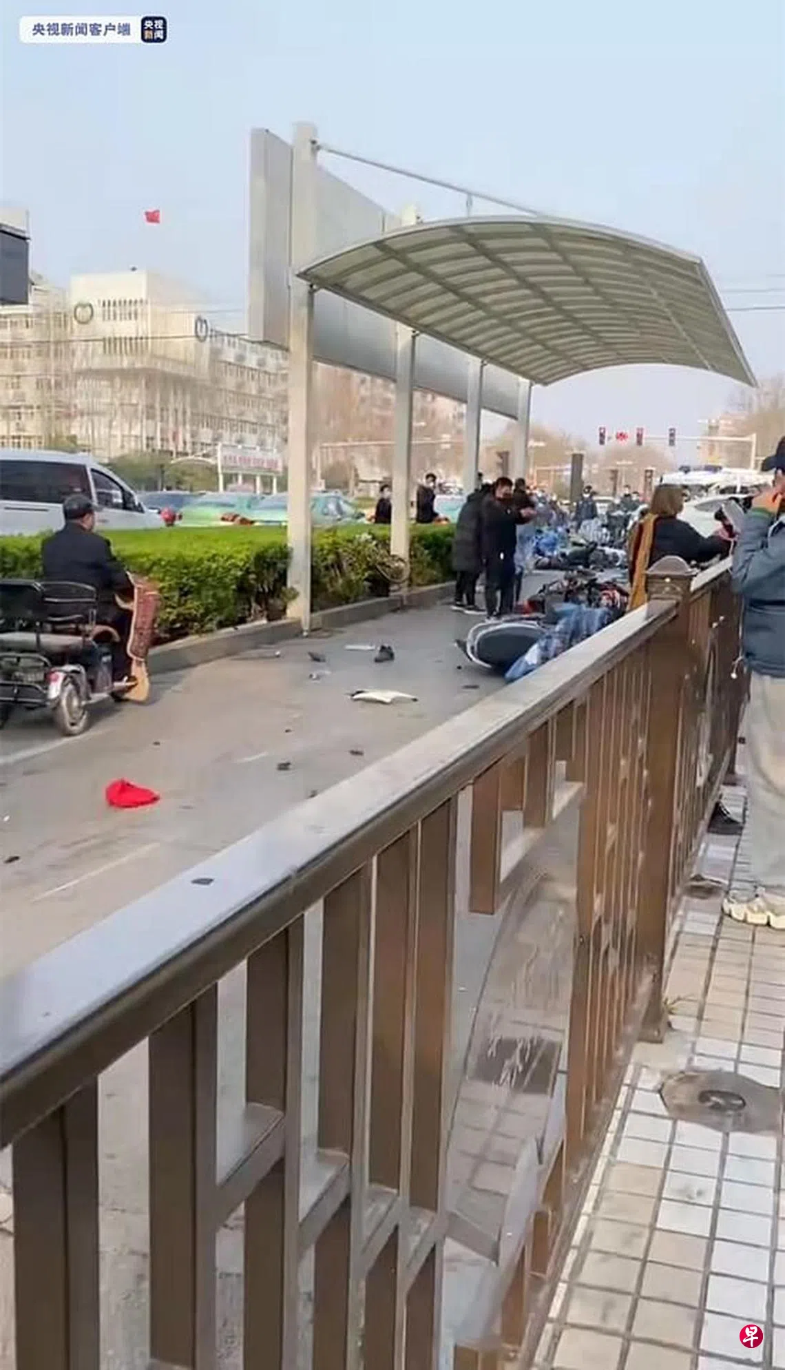 网上视频显示,当时车流量相当大,所有人正在等待前进,不料白色轿车突然飞速冲过来,撞倒许多骑车民众,一旁的护栏都被撞得凹陷。