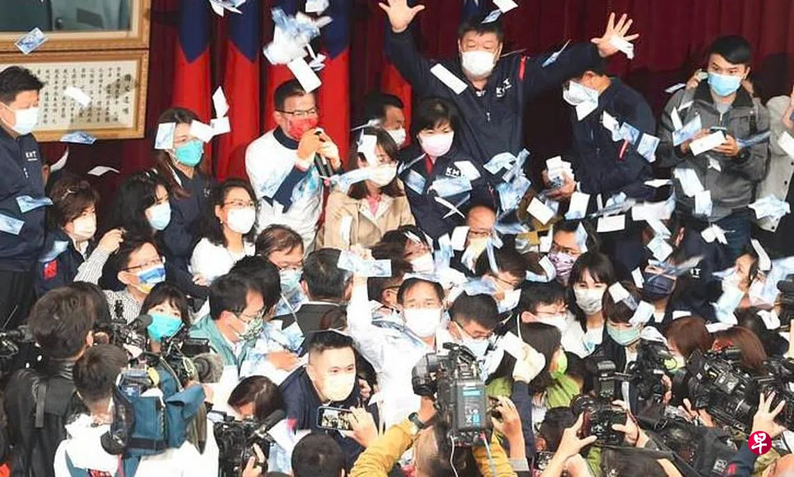 台湾立法院财政委员会今天(21日)审查攸关国务机要费除罪化的会计法草案,蓝绿立委爆发激烈冲突,民进党团最终以人数优势表决,将草案送出委员会,并宣布散会。