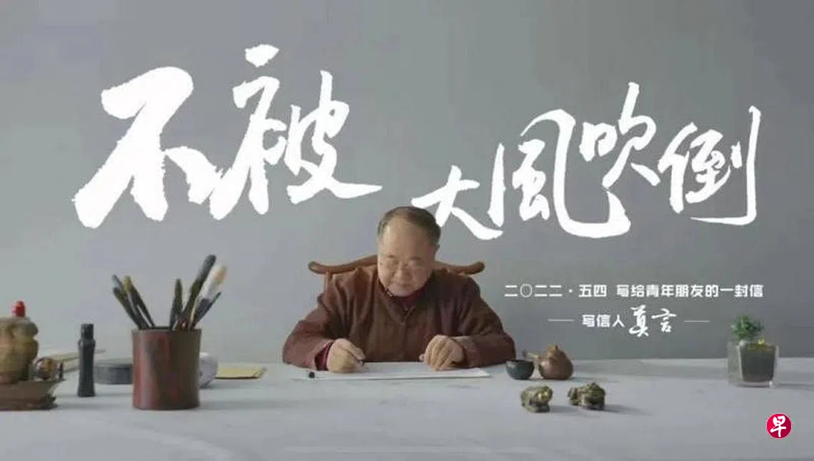 中国首位诺贝尔文学奖获得者、知名作家莫言在五四青年节之际拍摄了一段视频,用写信的方式来勉励中国青年,艰难时刻不要灰心沮丧,只要不倒退,也算一种胜利。
