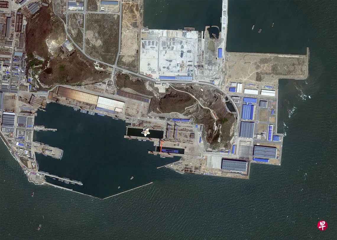 据香港《南华早报》报道,卫星图像分析公司全资源分析(Allsource Analysis)本月5日发布于推特的卫星图像显示,从4月底至本月初,一艘舰艇出现在辽宁省葫芦岛港造船厂的浮动码头上。