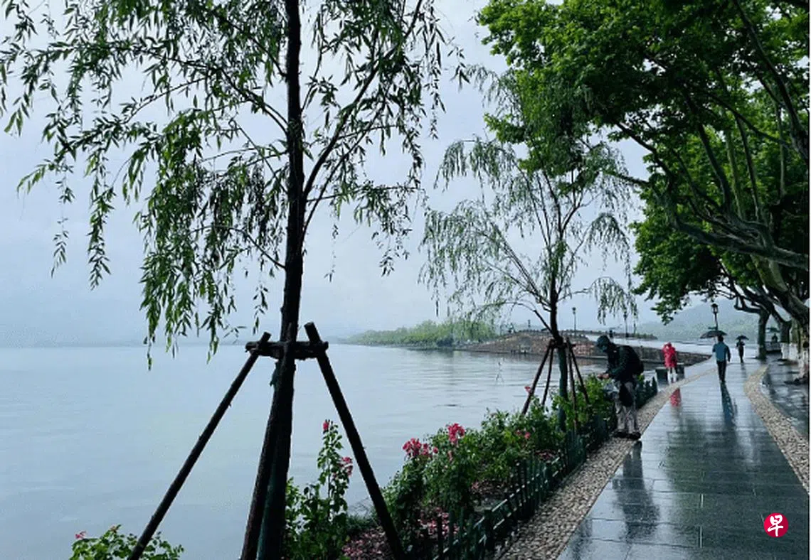 有杭州市民本月初发现,西湖边北山街保俶路口以西到断桥的一段,湖边的柳树不见了,取而代之的是新种下的月季。