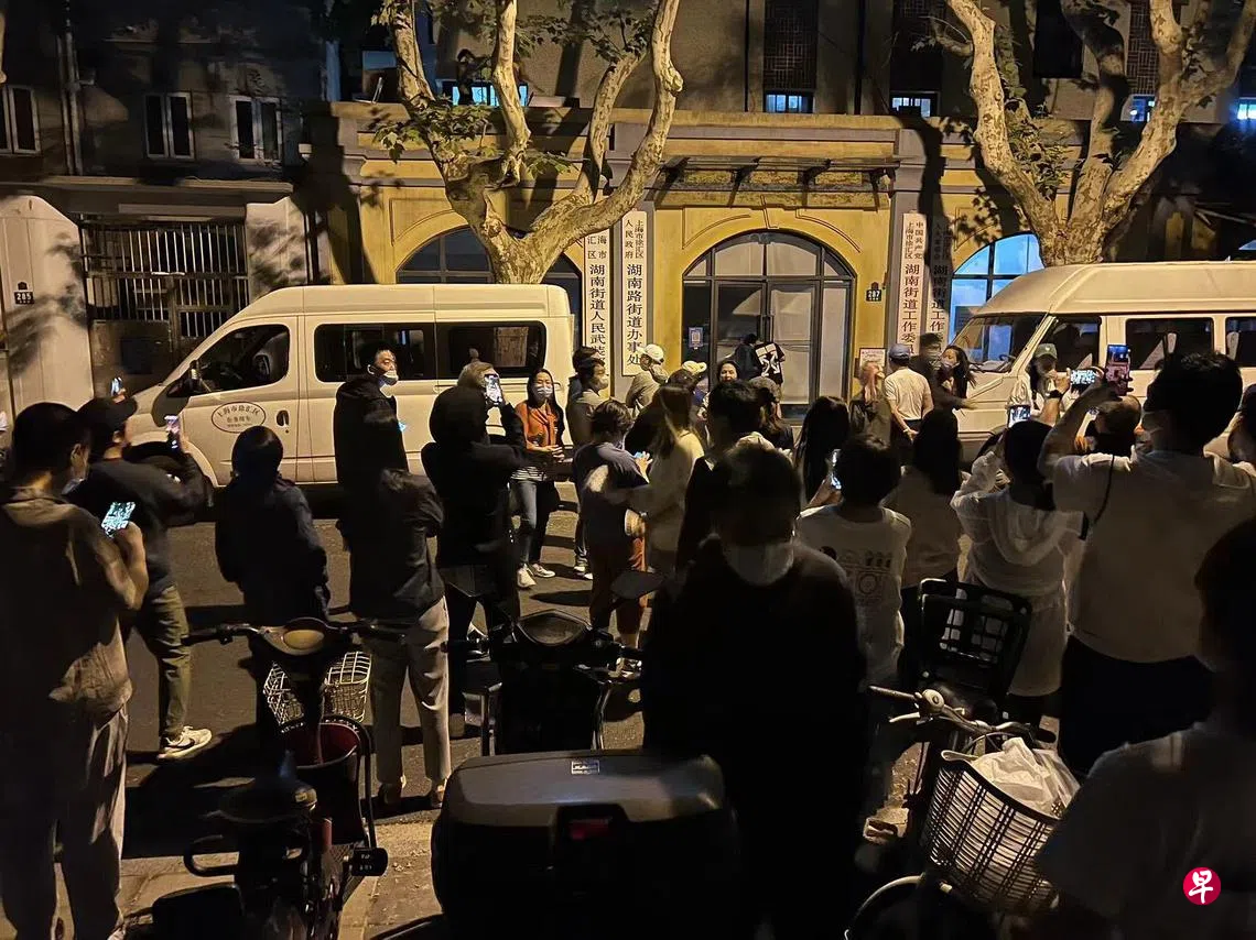 众多居民随后步行至徐汇区湖南路街道办的办公楼外讨说法。居民代表说,汇贤居数周没有阳性病例,符合解封的标准,按照上海市政府防疫政策,应该申请无疫小区,发放出门证。如果隔日早上街道办拿不出市政府要求继续封控的红头文件,也没有居民理应获得的“出门证”,那么汇贤居居民将“自行解封、自由出入”!