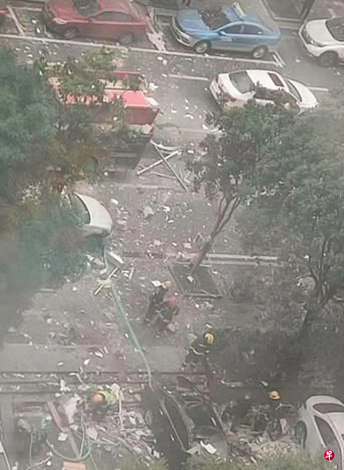 多段现场视频显示,爆炸发生在小区底楼商铺,门面前后被贯穿,现场有消防员受伤。爆炸还击穿了地下室楼板,门店前后洒满爆炸碎片。