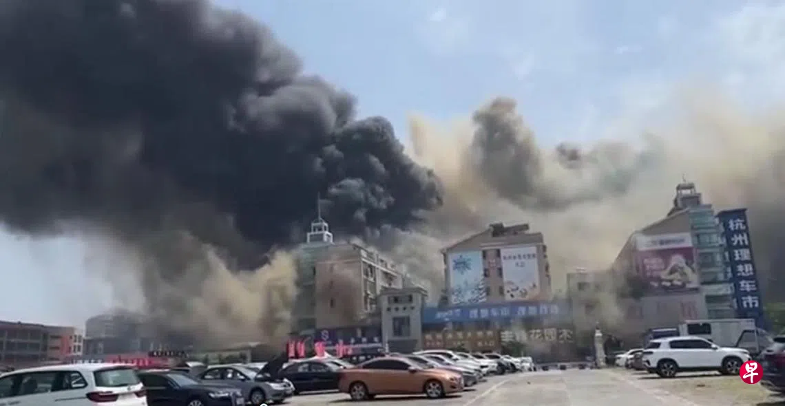 网传视频显示,事发建筑物冒出滚滚黑烟。