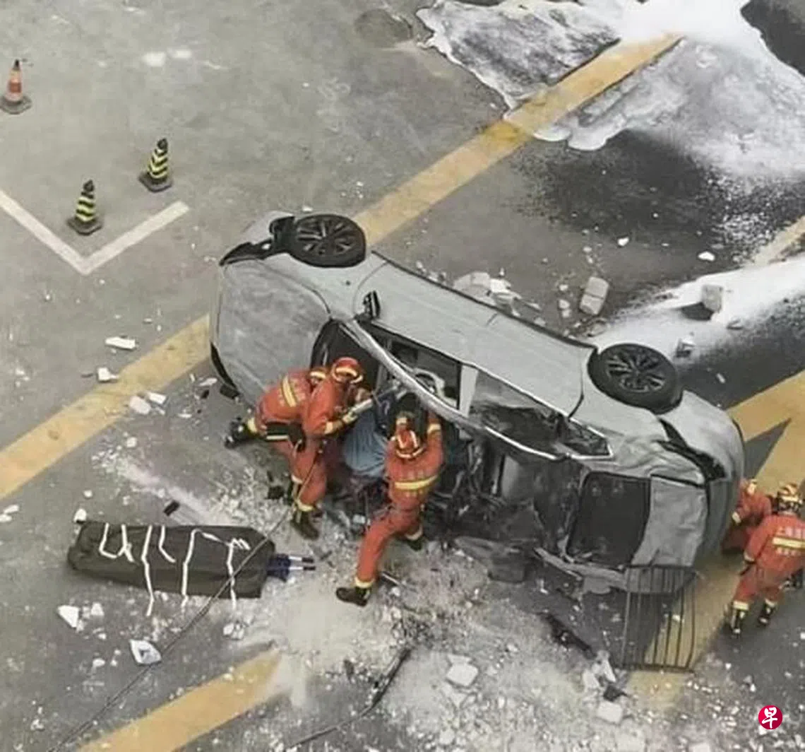 据悉,事故发生后,除工作人员对车辆进行搬移外,现场还有多名身穿制服的消防员来到现场共同处理事故车辆。